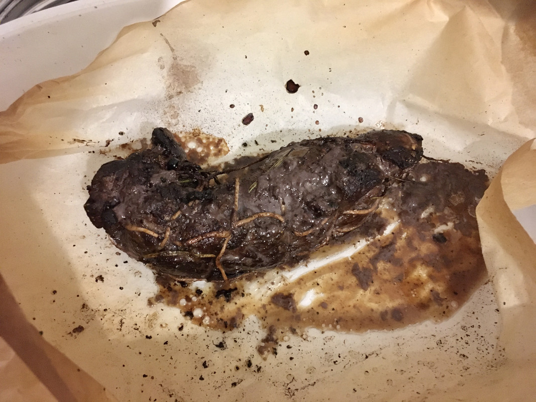 Una volta ben rosolata, salare e pepare la carne su tutti i lati ed infornarla a 200* (10’ ogni 100g di carne) avendo cura di irrorarla ogni tanto con il suo sugo o con una spruzzata di vino rosso.