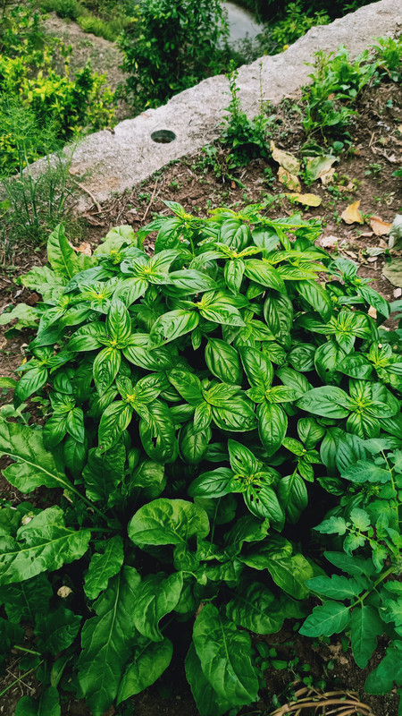 L'ho in piena terra e senza protezioni, già sono al secondo pesto e ad innumerevoli aromatizzate di minestroni, melanzane alla parmigiana e paste con la fagiolina e adesso non so cos'altro.