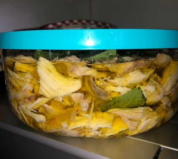 Togliere la pentola dal fuoco e lasciare raffreddare il coniglio nel suo brodo di cottura.