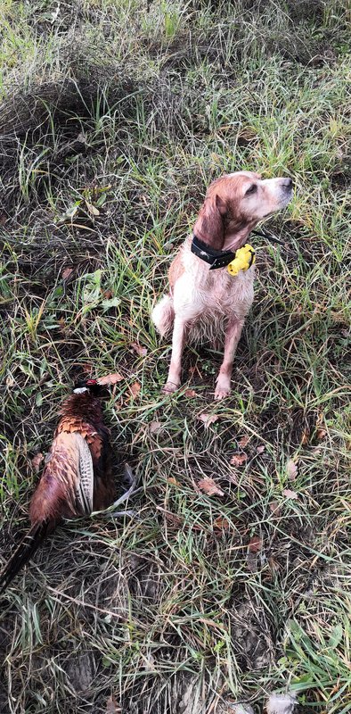 Lei e la setter affilano subito quello che reputo un fagiano che se la da a gambe di pedina.