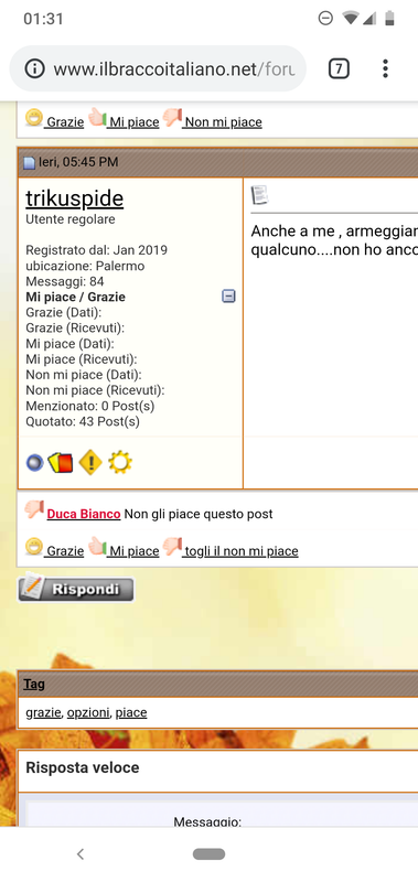 Grazie Duca, purtroppo non so nemmeno a chi l'ho rifilato quel non mi piace, se mai mi capitasse di rivederlo saprò come fare