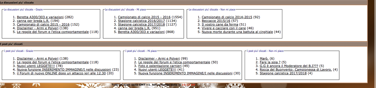 Statistica..... disciplina che studia quantitativamente e qualitativamente un fenomeno collettivo. Bene... questa immagine dimostra che il forum, come sottolineato migliaia di volte sta andando a “signorine di facili costumi”. Ormai i cani e la cinofilia sono un lontano ricordo e le discussioni sono ad appannaggio di pochi figuri che di buono portano il numero di contatti giornalieri.... si evince in chiave lapalissiana che : “ a dar la biada agli asini, non è che si trasformano in cavalli”.