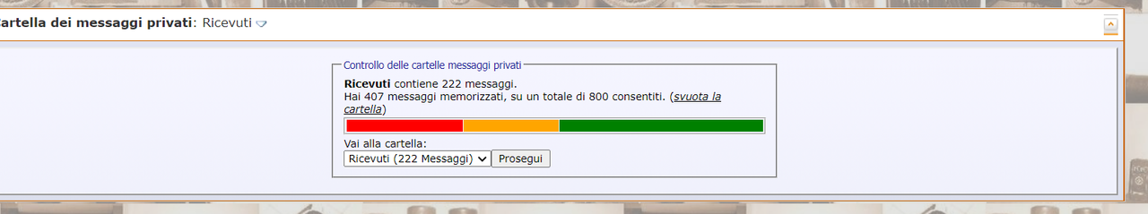 Però è strano che con casella libera non riesci a ricevere ed inviare messaggi....prova a inviarmene un altro, altrimenti manda una mail a Massimiliano e fagli presente il problema. Se fino ad oggi sei sempre riuscito ad inviare e ricevere messaggi evidentemente c è qualcosa che non va.
