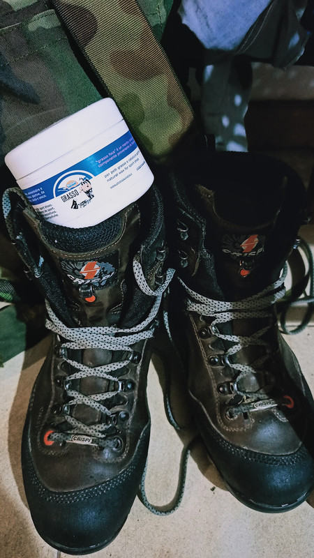 Ho usato con soddisfazione per anni il grasso Aquila sia sugli scarponi che sulle cartuccere e le cinghie dei fucili con ottimi risultati; da qualche tempo uso, e me ne trovo del tutto contento un grasso per selle dell F.M. Veterinari in scatola da un kg che trovo davvero ottimo.