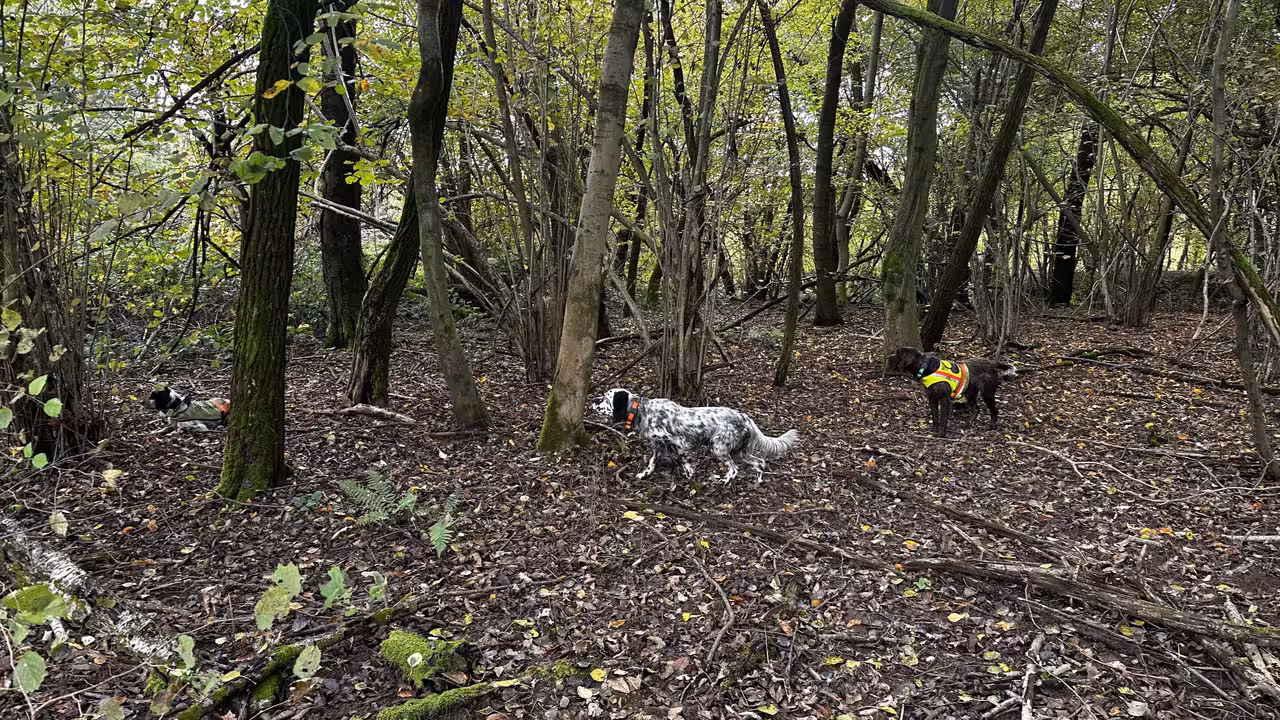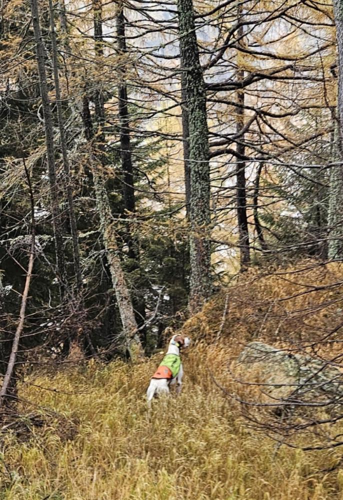 Una ferma lunga su una beccaccia fantasma che non si è fatta trovare all'appuntamento, probabilmente rifermata anche qui a vuoto qualche centinaio di metri più su, solo intravista tra gli alberi...quindi da non contare, perchè si può sempre sbagliare.