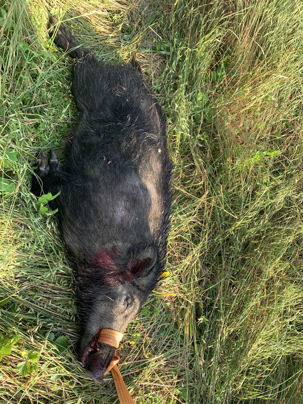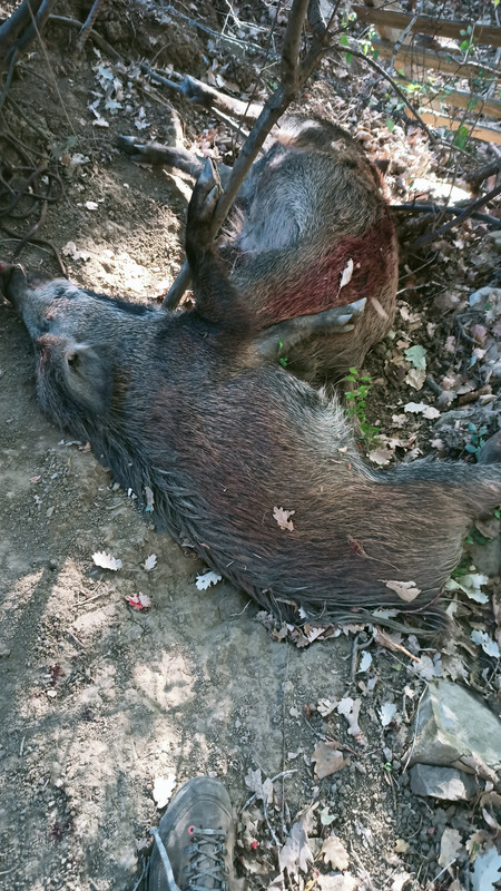 Tirato con una buona palla da caccia (non una squizza e squazza) in un normale calibro venatorio e questo cinghiale fa l'affronto di cadere li (va detto che, in genere, fanno anche 20 passi).