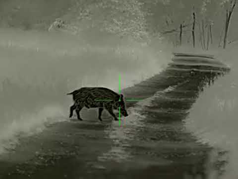 Messo giù il termico da visione si passa a quello da tiro...... il video comincia con il cinghiale a circa 80 metri, l'addetto lo vede tranquillo, evidentemente è anche ad aria buona, sta fermo e non fa strani rumori....... il vero artista (se si può definire così comunque un atto di questo tipo) è aspettare che passi l'ultima barriera di vegetazione (quattro stoppie) e poi..... tac ....... e giù sullo stradello bianco.