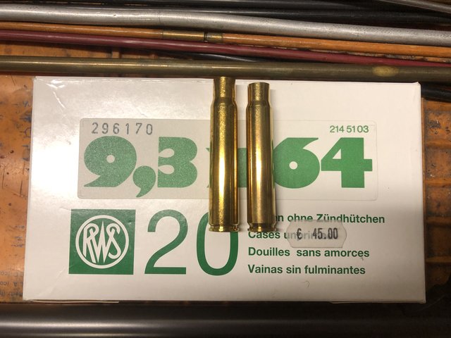 Con un po' di lavoro è possibile ricavare i bossoli del 9,3x64 da quelli del .338 Win. Mag., se ricordo bene RCBS ha un apposito set di dies da formatura per quest'operazione. Come giustamente scritto sopra è molto più pratico utilizzare il .375 H&H, soprattutto se si è in Africa e si è rimasti a corto di munizioni.Commenta