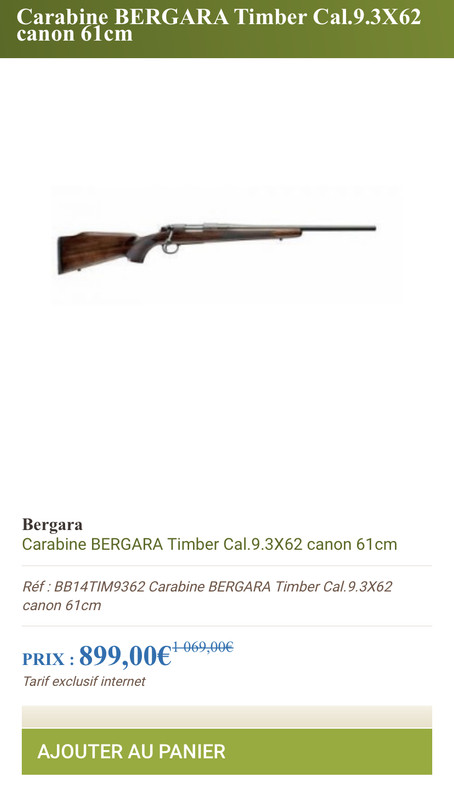 Ma perché insistete tanto con sta Bergara in 9,3 x62? Non la fanno più, nel catalogo Bergara International 2020 e sul Sito Ufficiale non c'è, se in giro ne hanno di vecchie e la volete, accattatevela [;)][:-golf]