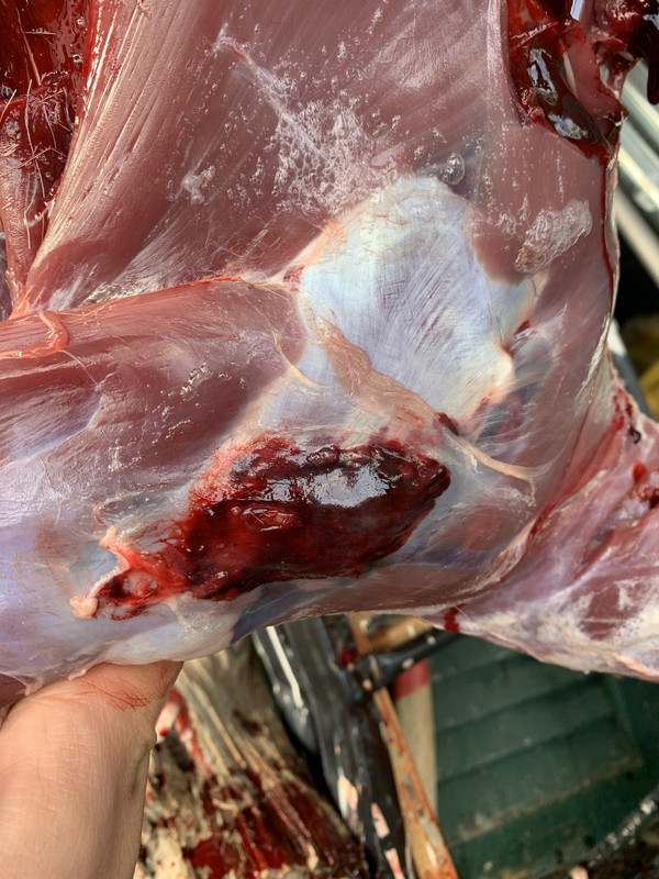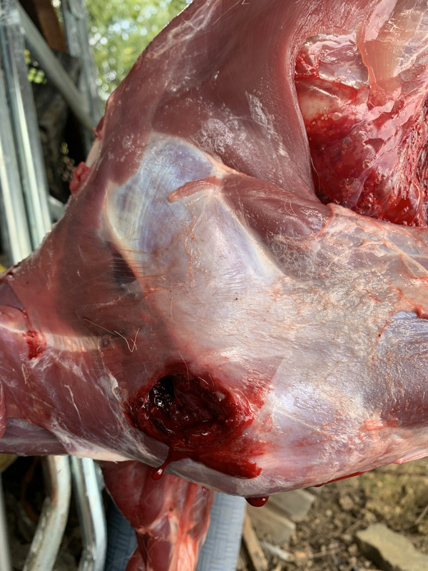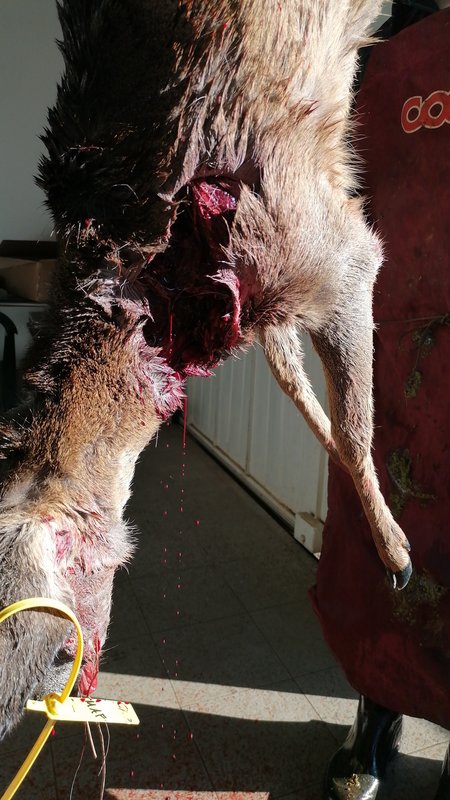 Metto un capo colpito praticamente nello stesso posto col 308......se la foto è "troppo" la tolgo.