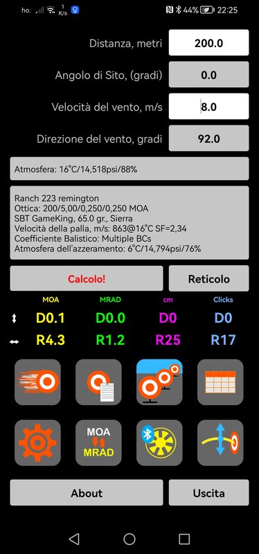 Guarda di seguito le simulazione di 3 tiri a 200 mt, con vento laterale a 90 gradi con velocità di 8 ms.