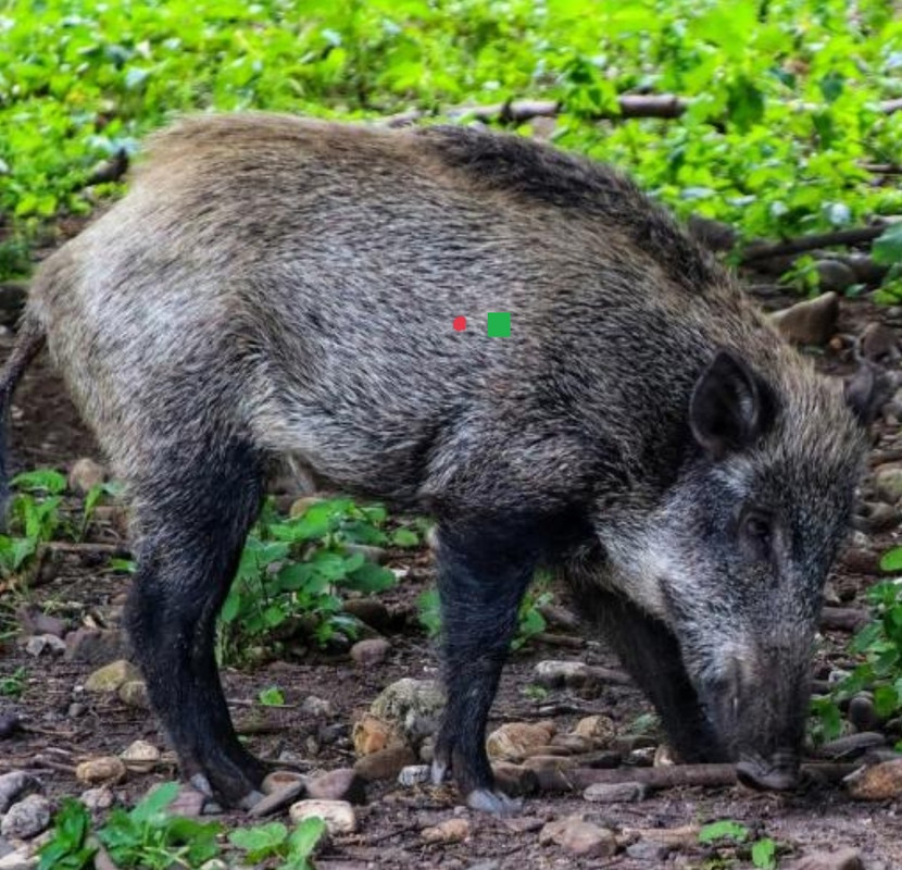 Triku, il punto che hai segnato è molto vicino allo stomaco. Un buon punto di riferimento per colpire il blatt è la parte interna della zampa, possibilmente perpendicolare al terreno. Si trova sopra il cuore, sulla linea che divide la cassa toracica, meglio stare leggermente nella parte superiore. Per me colpire perfettamente il blatt significa colpire il nervo vago. Per questo motivo alcuni tiri fatti nel blatt fanno crollare il cinghiale sulle zampe, il potere lesivo della palla non lo farà più alzare. Per me il blatt è la zona dietro la spalla. Per colpire un punto preciso ci vuole un riferimento preciso. La tecnica di tiro più efficace per la caccia è il tiro a zona. Più larga è la zona, prima e meglio si stabilizza la carabina.