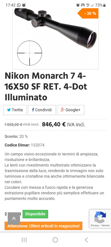 Vai su meopta optika 6. Ne ho avuta una (3-18x56) e mi sono trovato molto molto bene! Venduta ad un amico che ne ha adesso 3!