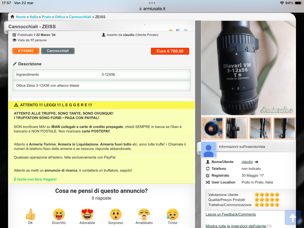 Con 700 euro uno ci caccia per i prossimi 30 anni senza nessun complesso di inferiorità. 700 euro compreso un attacco che si può togliere e mettere dall’arma e mantiene la taratura.