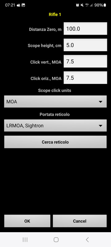 Il tuo è sul primo piano focale ed è nel database di strelok, anche la cartuccia è nel database.