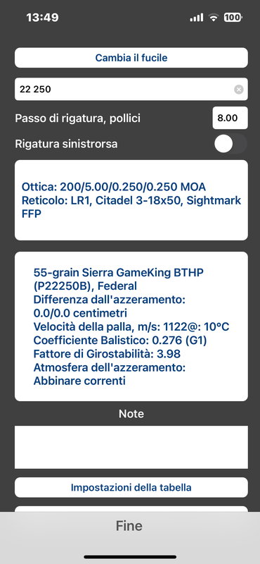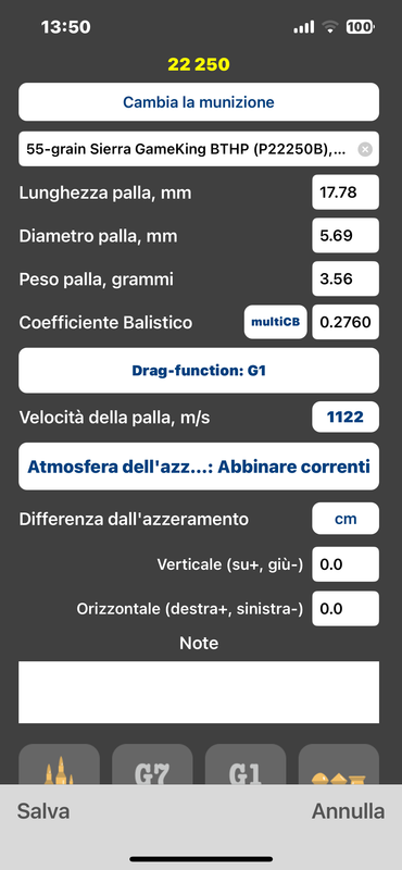 Per quel che riguarda Strelok ho trovato una configurazione che avevo fatta per un amico per un 22 250.