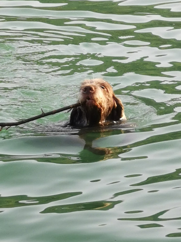 Sbrigate le formalità, arrivo alla zona e libero il falloide baffuto, che inizia subito scagazzando e spisciando ovunque, per poi gettarsi in una serie di corse che neanche i neutroni del CERN. Dopo qualche minuto, la "sboroneria" termina e comincia a concentrarsi. Il naso e la testa si muovono freneticamente, mentre si passa tutto lo sporco e tutti i rovi (che alla sera caverò con gioia), quando poi ad un tratto mentre prosegue in rettilineo e ha già percorso qualche traiettoria curva come (suppongo) per riprendere un odore e riazzerare la cerca, la frenata e la testa a ridosso del rovo. Inchiodato lì, aspetta paziente che io mi avvicini. Mia carezza per premiare la ferma, e parte il duello.