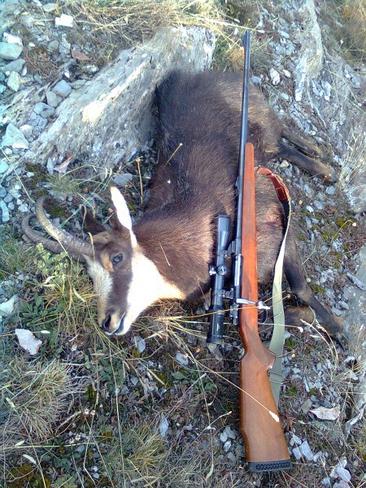 Il camoscio si trova in una zona aperta, avremmo possibilità di tenerlo in vista per molto tempo dopo il tiro e in caso di un eventuale ferimento. Conosciamo bene le nostre armi e nonostante la distanza sia un po' il limite per i soli 6 ingrandimenti del cannocchiale si decide per il tiro. Piazzati fianco a fianco, uno spara mentre l'altro tiene l'animale nel binocolo.