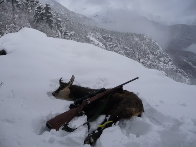 Finalmente inizio a intravedere il binello che cercavo. Inizia la preparazione del tiro. La posizione è scomodissima, dopo quasi tre ore a ginocchioni nella neve i brividi di freddo e i muscoli intorpiditi non facilitano le cose.