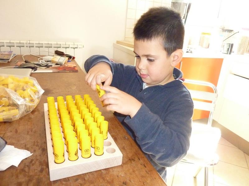 invece mio figlio è entusiasta...gli piace...sicuramente non ha capito che cosa è la caccia...ma gli piace fare tutte queste cose con me....che sia andare nei boschi col cane...al percorso...caricare cartucce....aiutarmi...