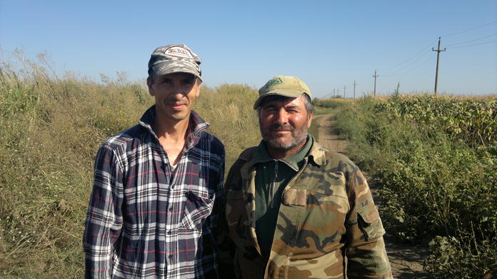 Vedi foto di 2 dei ragazzi impiegati che si sono presentati sul posto con tute di fabbrica tra l'altro stracciate, ricevendo in dono dallo scrivente una camicia mimetica.