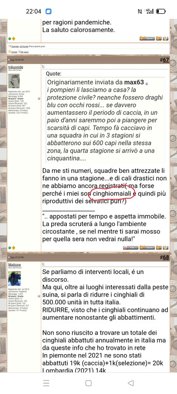 Per @Mak63: se la peste suina prende piede e non viene eradicata, altro che pochi cinghiali alla 4a stagione di caccia: a caccia non andrai per niente per almeno un lustro e non avrai cinghiali che girano.Hatz und Gejaid ist edel FreudCommenta