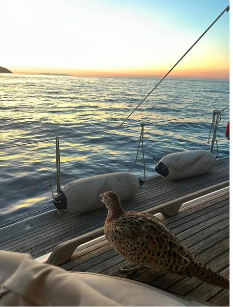 C'è una fagiana, una barca a vela....ci sarà uno skipper che non sa rinunciare alla caccia e ha il dilemma se navigare o cacciare.