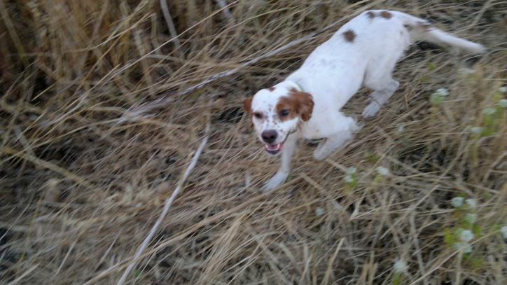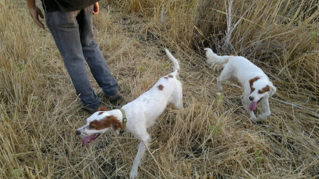 dopo mesi, ho fatto le foto alle "bastardine"(non è vero è stata mia moglie che mi ha accompagnato) sono un incrocio tra breton e setter, e la figlia che è un ritorno sul breton. ciao