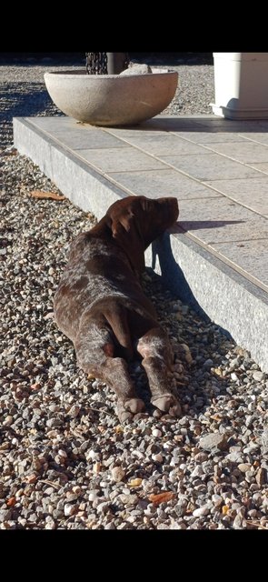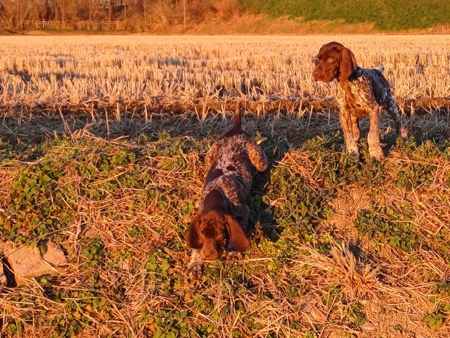 Questa è la loro mamma, (Oxy di S. Caterina del Sasso) che dopo due mesi e passa di box coi cuccioli, appena portata in risaia non ha dimenticato il mestiere. Beccaccino, di fine dicembre non facile, fermato e corretta al frullo. Qui si sta meritando le mie coccole in questo S. Stefano soleggiato