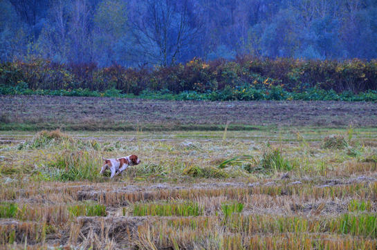 Penelope ha pasticciato un po' andando in ferma tre volte su un'involato, il terzo bracco Italiano era Aiace, che è andato in ferma in uno sporco, sono partiti due fagiani e c'è stato un po' di movimento, non si è capito bene cosa sia successo e non è stato