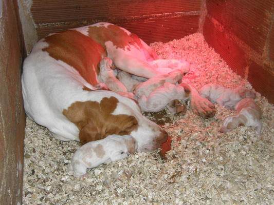 Nello scenario del bracco italiano, non posso non segnalare il lieto evento in casa Col Petrosa: finalmente sono nati e sono una marea ............ sono dieci pargoletti bianco arancio: 5 maschi e 5 femmine; nati da EDDA (figlia del camp assoluto Ubaldo di Col Petrosa x Baldovina) accoppiata con MISTER di Cesare Manganelli condotto da Vinicio Tognolo e pluriqualificato per il campionato italiano ed internazionale di lavoro.