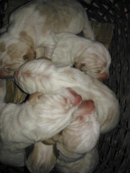 Cuccioli bianco arancio, nati il 16 marzo da Fracas della Bassa Brianza (Vasco del Falso x Entrà della Bassa Brianza) e Antea del Podere Rosa (Tenero...