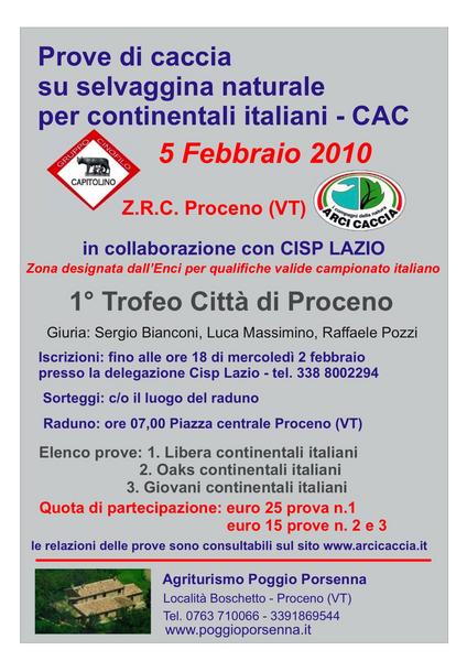 Non so se ne sia già stata data comunicazione altrove, ma vorrei darvi notizia dell'imminente prova su selvaggina naturale con CAC a Proceno (VT).