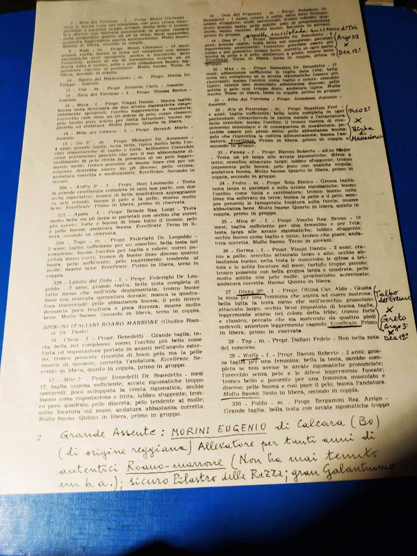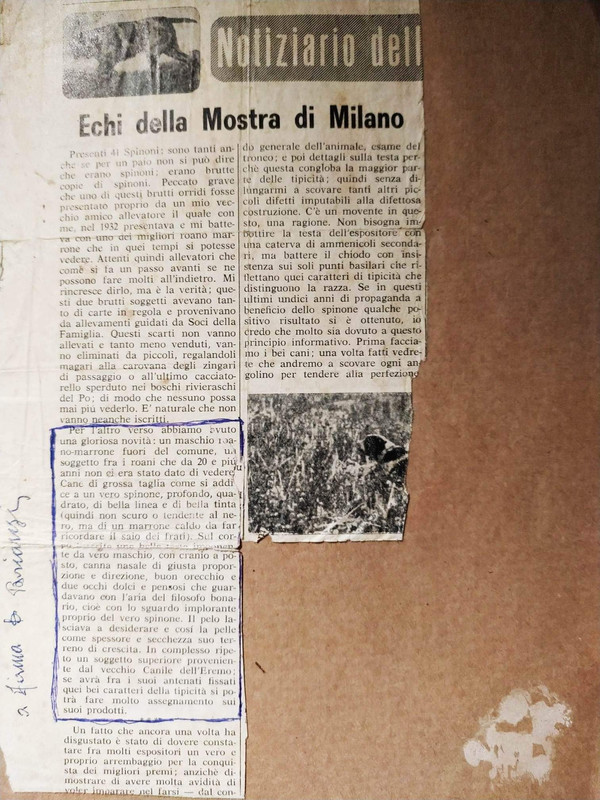 Vi fu un competente allevatore di Spinoni, Sign. Carasi titolare "Della Possenta". Ebbe il famoso Camp. Rex del Biancospino. Il bravo Bertagna dei Morenici ha raccolto in zone un ottimo discendente di questo campione Rex, roano di nome Dik, che inserito nelle Sue genealogia con ottimo vantaggio.