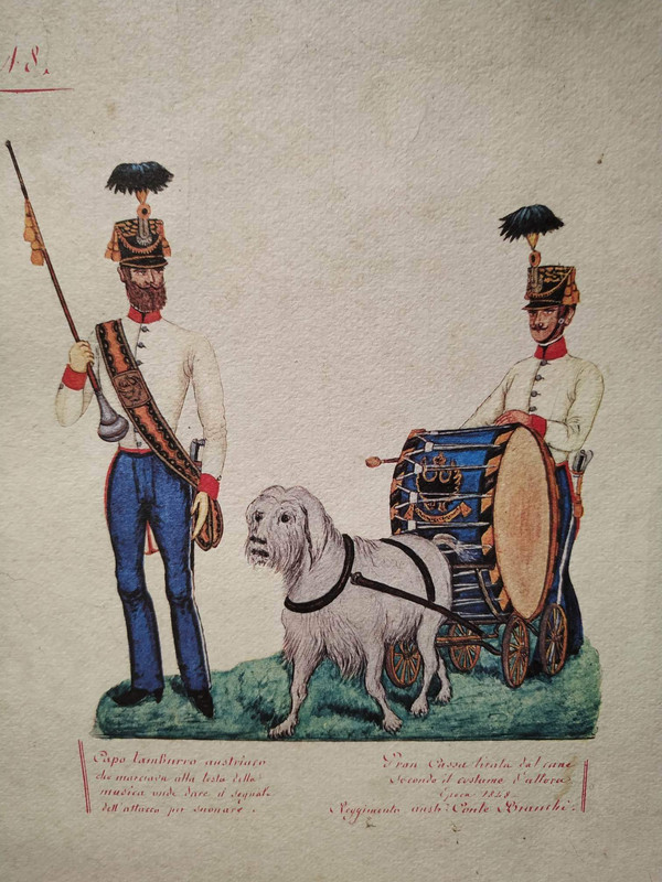 A proposito dell'avvento e dell'evoluzione dello spinone di varieta' bianco e bianco arancio. 1848, pare un "cravin" al seguito dell'esercito austriaco.