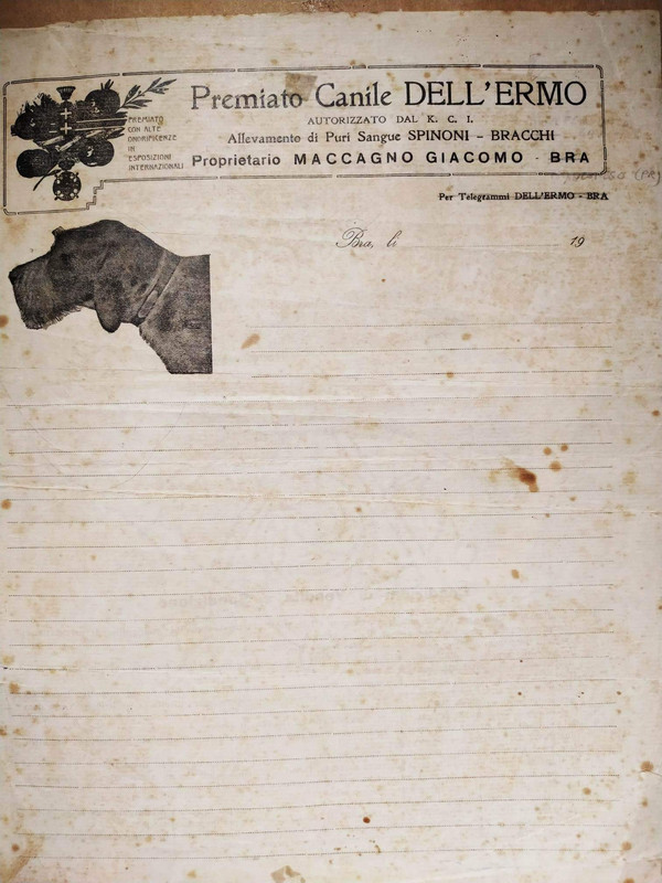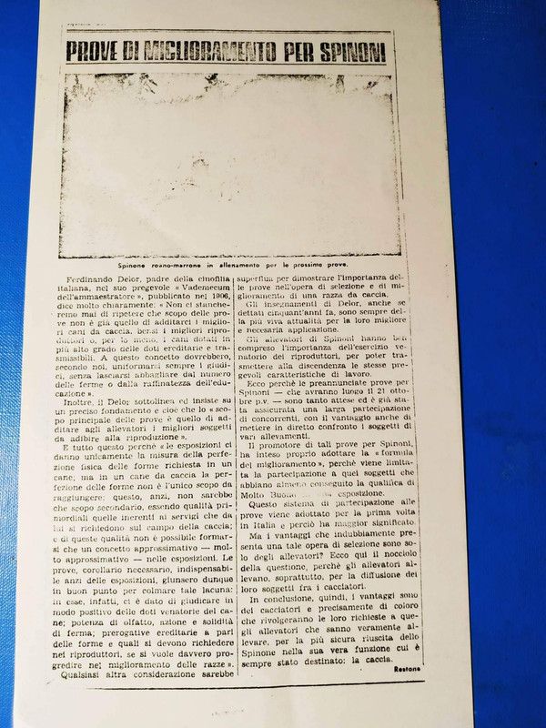 CAMP. DERO DEL TORRIONE, tramite il quale mi resi conto che lo spinone dipinto da G.B. Quadrone, riprodotto da A.Vecchio e descritto dal Dott, Brianzi, e' realmente esistito.