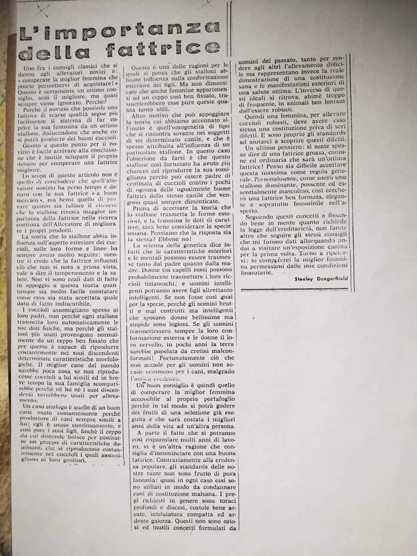 Pubblicato dall'Enci, ma non trovo questo articolo molto interessante. Soprattutto gli apprezzamenti riguardanti le donne di questo articolista sono del tutto stupidi e infondati.