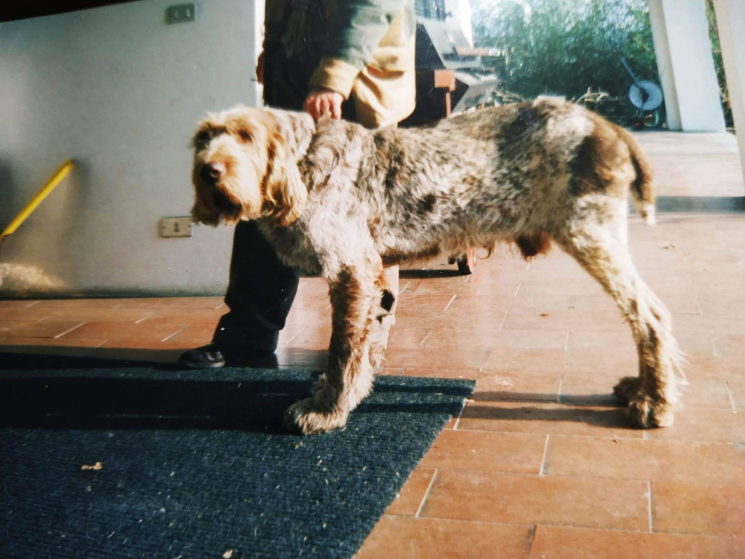 1970/80. Un prodotto della stretta consanguineita', praticata in collaborazione con i dott.ri Cortesi Del Vecchio Quadro, al fine di recuperare il tipo di spinone roano perduto, che a noi piaceva tanto. Un mostro di tipicita', ormai in stato di debolezza organica.