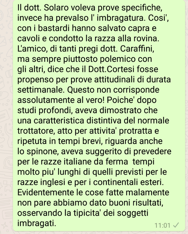 Restone e' il Dott. Caraffini. Evidentemente, sia Lui che il Dott. Delor, non avevano previsto a quale limite degenerativo avrebbero portato le nostre razza da ferma italiane queste prove definite attitudinali, diversamente non vi avrebbero fatto tanto riferimento.