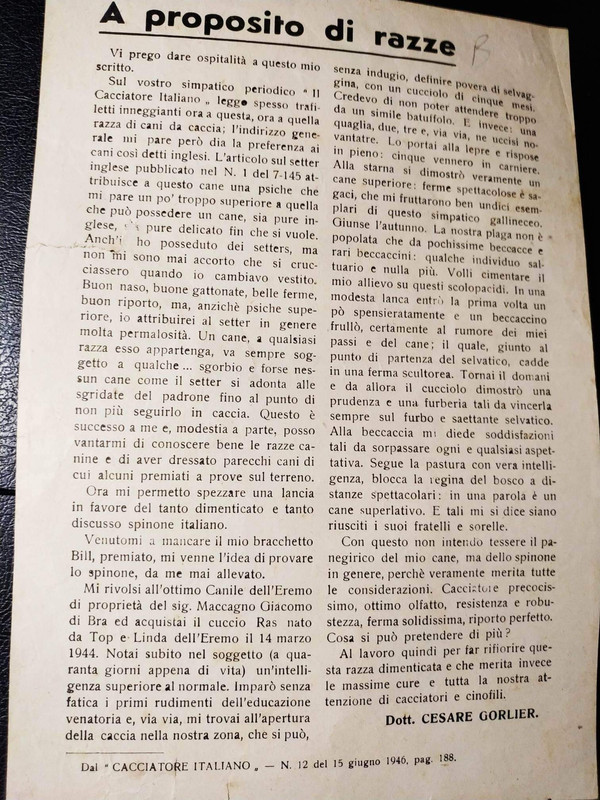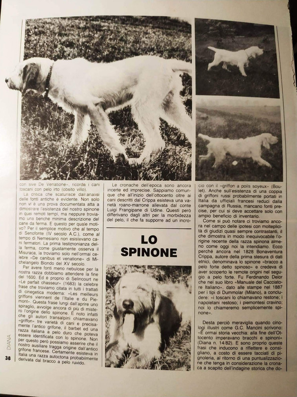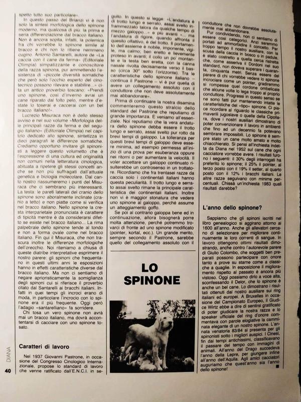 In quell'intervista ho espresso quelle che sono sempre state le mie intenzioni come allevatore di Spinoni e da dove provengono le mie conoscenze in merito. Per quanto riguarda la situazione attuale, data la mia esperienza, credo di poter fare un confronto con il passato.[;)] c'e una bella intervista di O.verderi nel sito degli spinoni di valle cupa, chiarisce alcuni suoi punti di vista professionali.