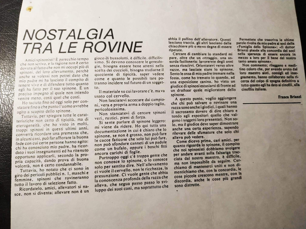 spero non sia vero la questione del Club... inteso come club riservato a pochi o con poche intenzioni di portare avanti spinoni tipici.