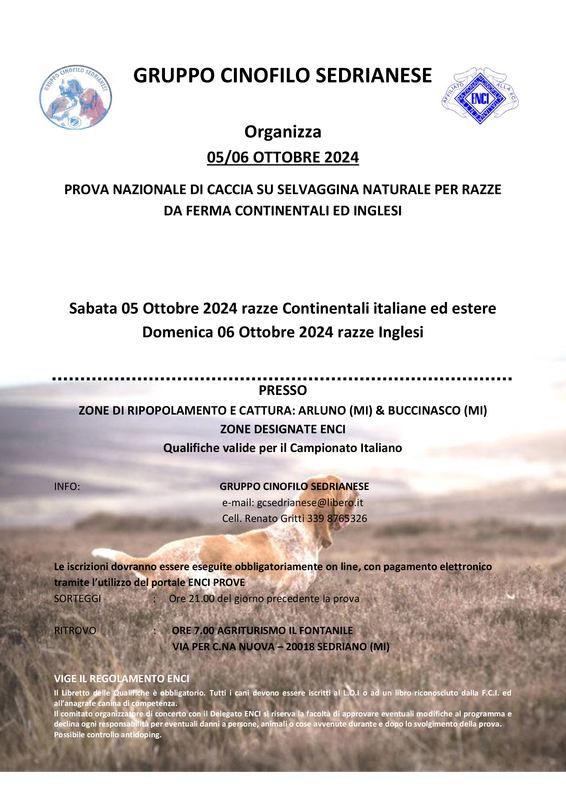Prove di caccia su selvaggina naturale per razze da ferma - arluno buccinasco (mi)