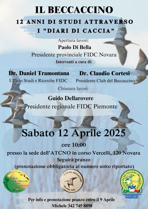 Sei appassionato di caccia al beccaccino? Hai a cuore la ricerca e il futuro della caccia? Ti aspettiamo sabato 12 aprile a Novara, in Corso Vercelli 120.