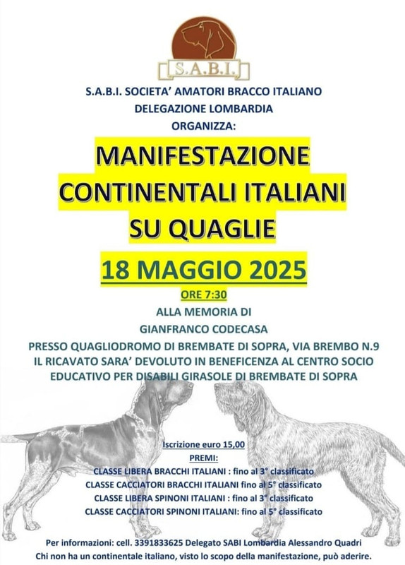 Brembate di Sopra (BG) - SABI - Manifestazione Continentali italiani su quaglie - Memorial Gianfranco Codecasa - Non riconosciuta Enci