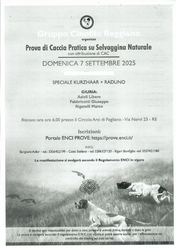 Reggio Nell'Emilia, Fogliano (RE)- Prove di caccia su selvaggina naturale per razze da ferma- SPEC. Cane da ferma tedesco a pelo corto