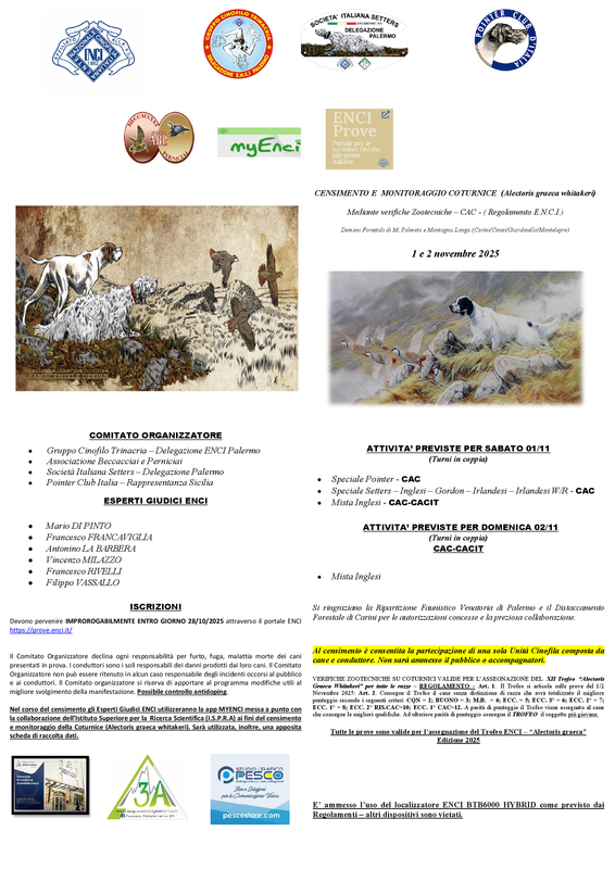 Cinisi (PA) -Prove di caccia su selvaggina naturale per razze da ferma-TROFEO ALECTORIS GRAECA-CENSIMENTO E MONITORAGGIO COTURNICE (Alectoris graeca whitakeri) Mediante verifiche Zootecniche