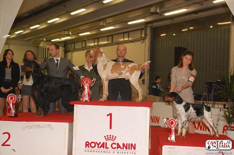 Purtroppo conosco solo il nome del breton, Feu di Val Grossa, di Danilo Bo che, giudicato per la prima volta in classe juniores al raduno di Limena a febbraio, ottenne un Molto Promettente. Successivamente ha ottenuto una sfilza d successi fino alla Mondiale di Parigi e, ora, sale sul podio del 7° Raggruppamento, cosa poco consueta per la razza, almeno nel nostro Paese.