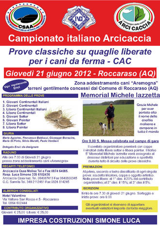 Ore 9.00 S. Messa celebrata sul campo di gara !!!Ars venandi est collectio documentorum, quibus scient homines ad opus suum deprehendere animalia non domestica cuiuscumque generis vi vel ingenio. (Fridericus II Imperator 1194-1250)Commenta