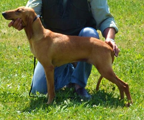 Ho acquistato il primo cucciolo da un noto allevatore. La genealogia mi sembrava buona, erano presenti campioni: bellezza, riproduttori, lavoro, sociali. Il risultato è stato sufficiente. Il cane ha un aspetto poderoso, eccellente al campionato sociale, è chiara la presenza del francese per voce e movimento. La cerca è sufficiente, diventa buona quando incontra la traccia, buon accostatore, tropp di filo legato alla traccia per la caccia in pianura per scovare con regolarità, risolve solo con il naso, ottimo inseguitore. Non sono riuscito ad amalgamarlo come vorrei con la muta dei cani da carniere, troppo diverso il lavoro, lui più legato alla traccia, gli altri più portati ad accostare immediatamente e a ricercare il covo, basta che percepiscano un poco d'usta per rastrellare il terreno e scovare anche in condizioni proibitive. Lui ama lavorare in gruppo, gli altri più indipendenti anche se coesi, lui dà voce sempre cambiando tono a seconda delle fasi gli altri più pacati quasi muti, ma precisi.