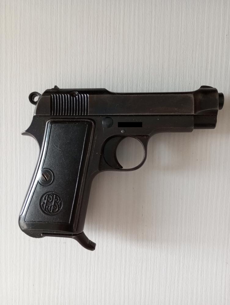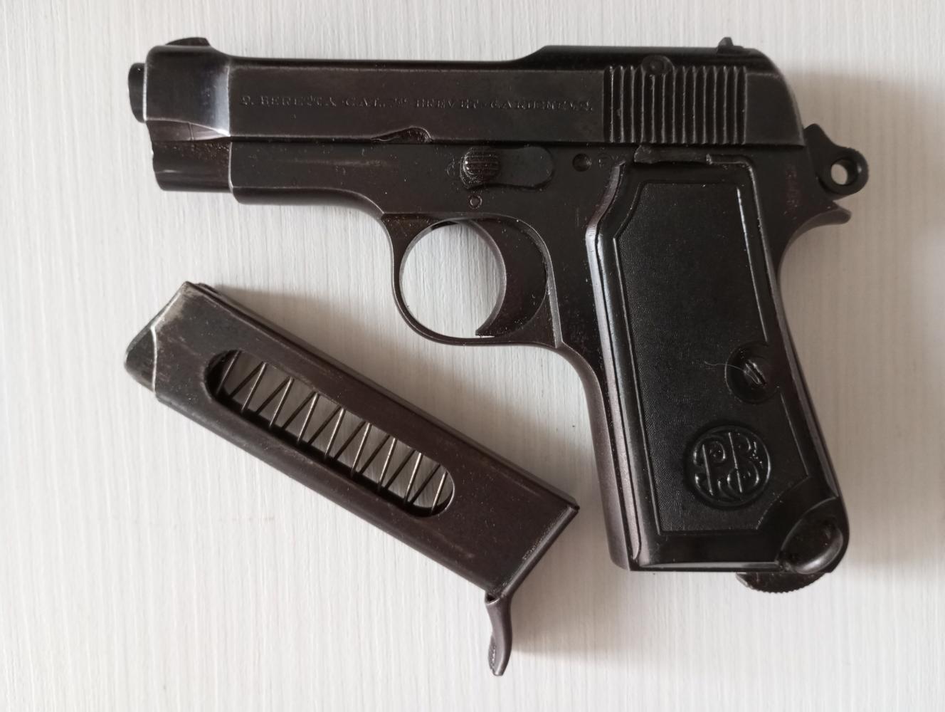 Pistola Beretta mod.35 cal.7,65 Semiaut. in BUONE CONDIZIONI, anno 1945/1950, guance originali e coeve con l’anno di costruzione,Questa pistola e’ una variante in calibro minore della Beretta M34 militare, fu prodotta per decenni in considerazione dell’ampia popolarità di cui godeva il calibro .32 anche tra i civili.In Italia il calibro 9 mm Corto 9 × 17 mm cioè .380 ACP del Mod. 34 e altri modelli rimasero interdetti in quanto considerati munizionamento “arma da guerra”,con l’arrivo del del più potente calibro 9 × 19 mm Parabellum il calibro 9 corto e 7,65 vennero declassati come calibri per uso civile.